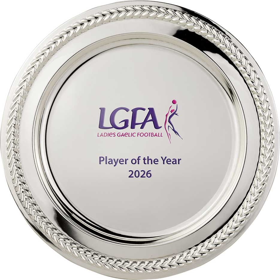 This salver can be engraved with simple text or more complex logo and graphic layout.