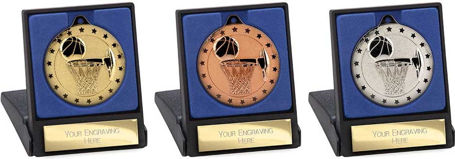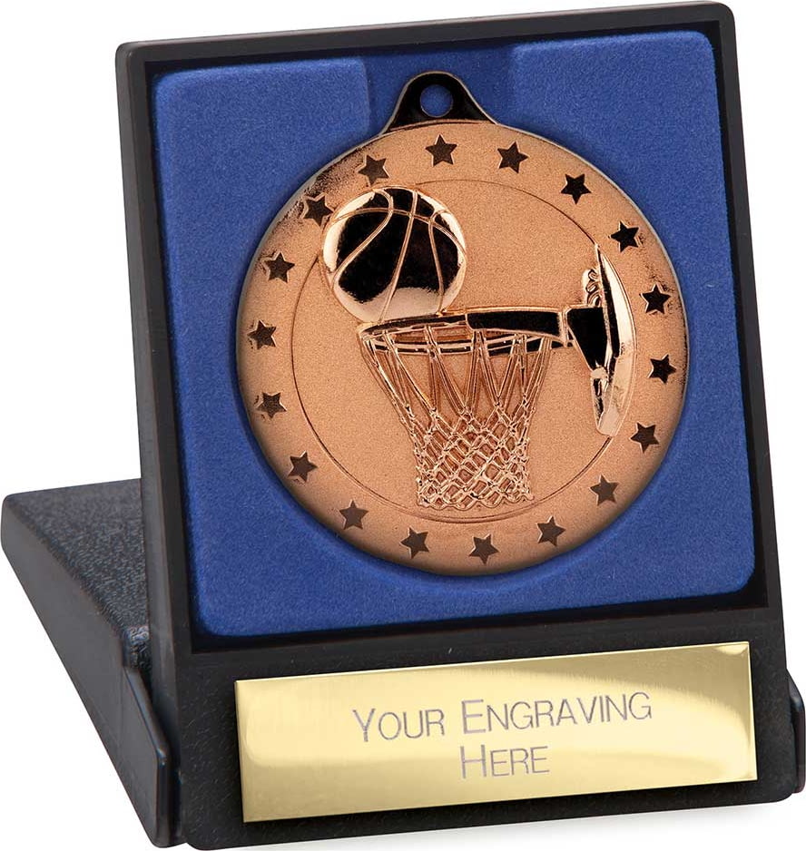 This exquisite basketball medal, presented in a plush blue presentation box, is the perfect way to commemorate outstanding achievement on the court.