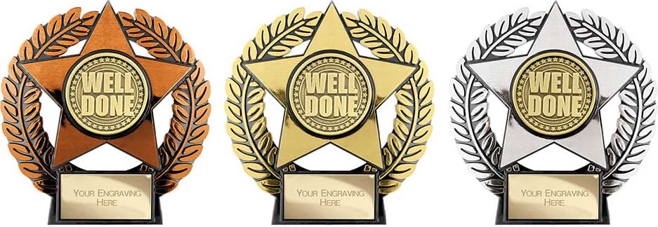 Medals available in 3 colours, bronze, silver and gold.