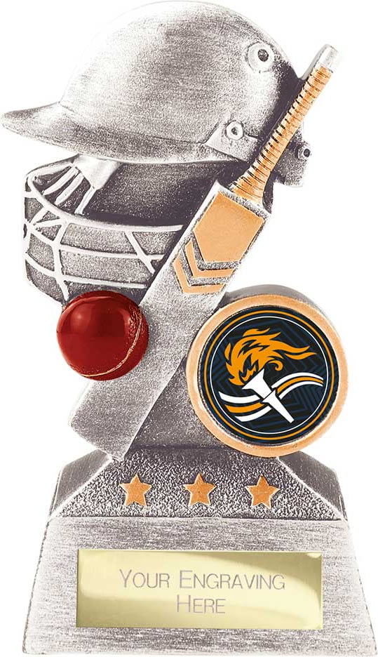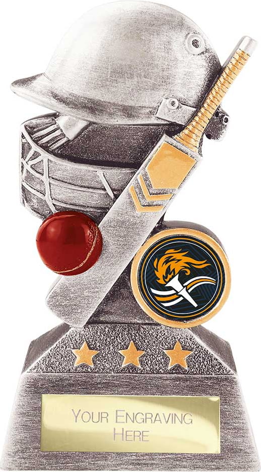 Optimum Cricket Resin Award Antique Silver & Gold.